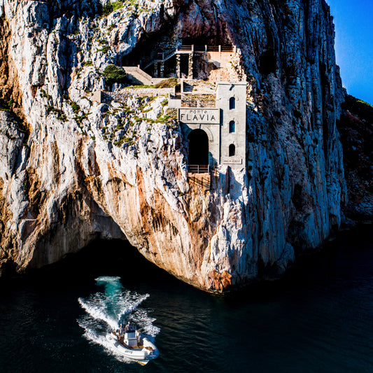Visita di Porto Flavia e Tour in Gommone con Maria